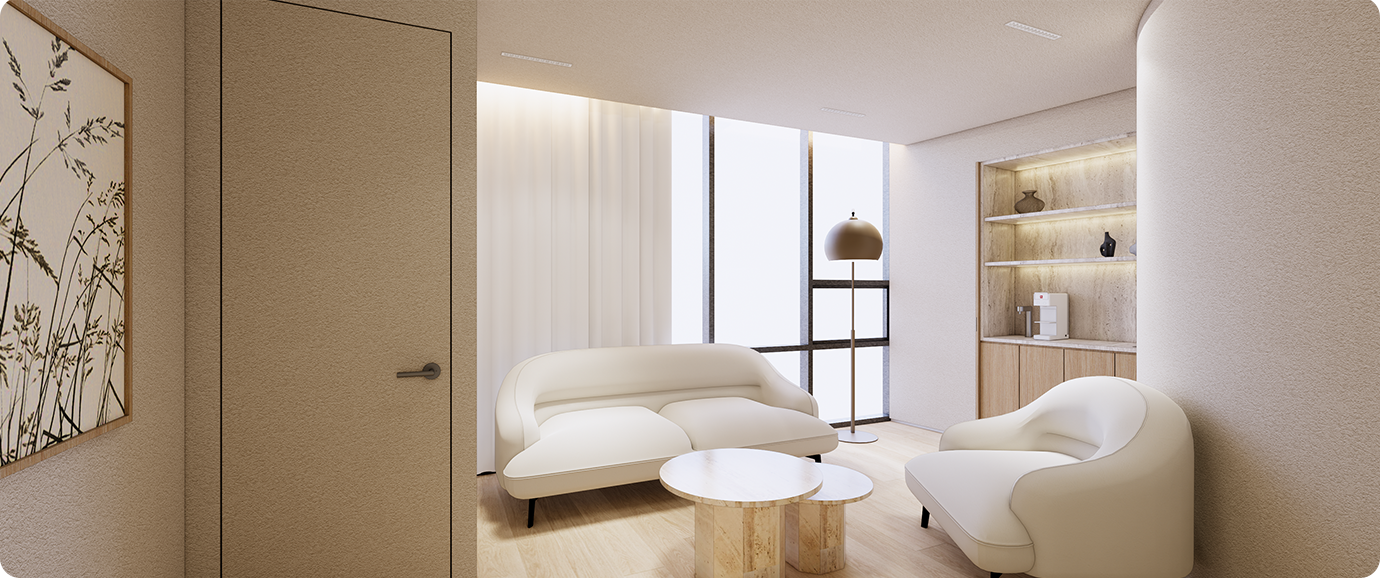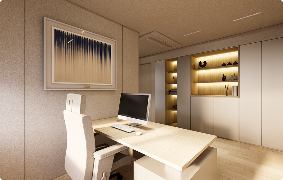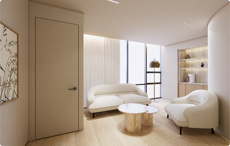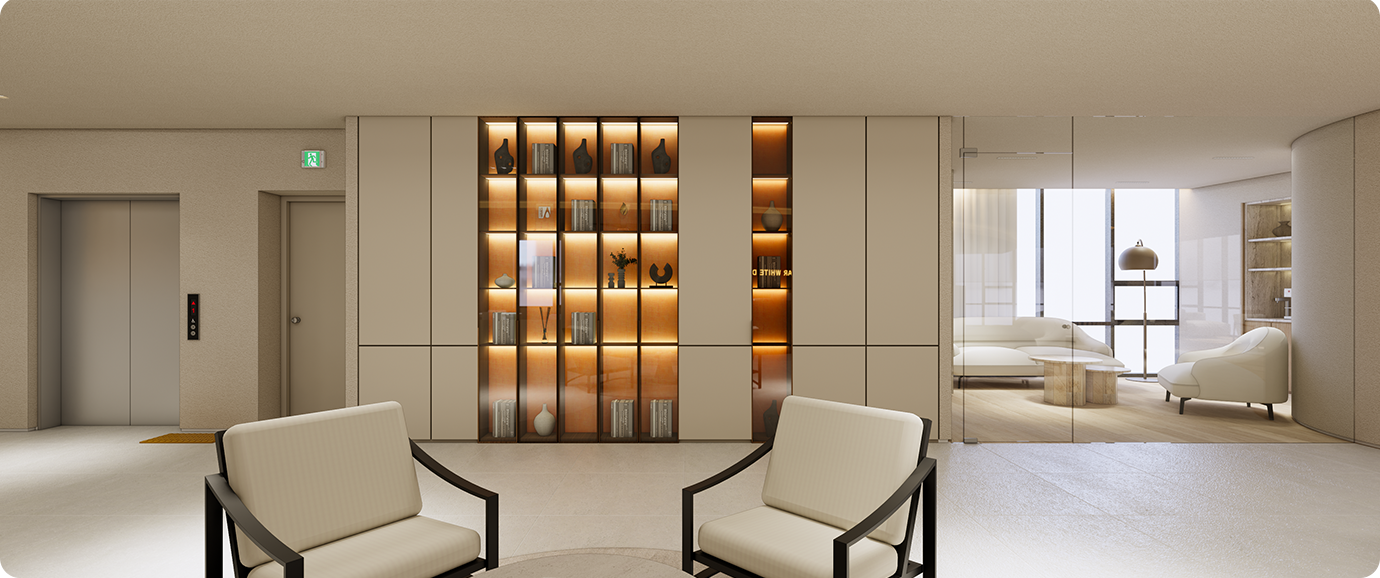 마치 호텔에 온 듯한 차분하고 세련된 공간에서,