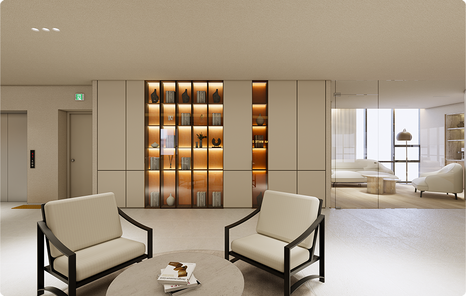 마치 호텔에 온 듯한 차분하고 세련된 공간에서,